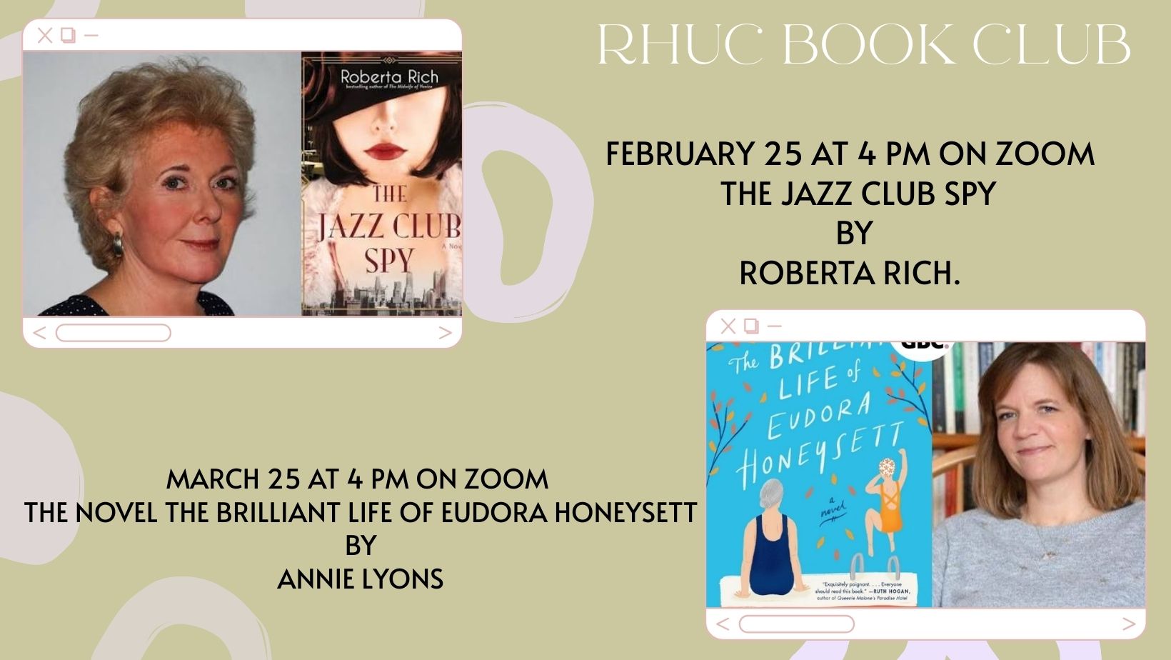 The RHUC Book Club will be meeting on Wednesday, February 25 at 4 pm on Zoom to discuss THE JAZZ CLUB SPY by Roberta Rich.
