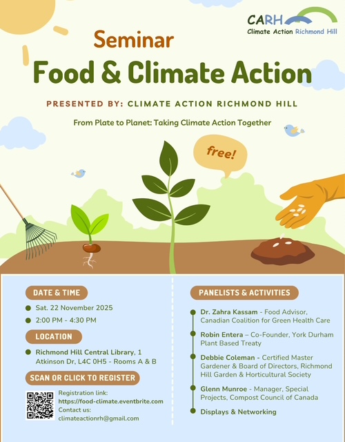 Net Zero would like to invite you to Climate Action Richmond Hill’s third seminar: “Food & Climate Action”.